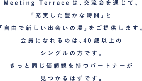 Web上でのマッチングサービスではなく、実際に会員が集まる「交流会」という場での出会いを大切にしています。